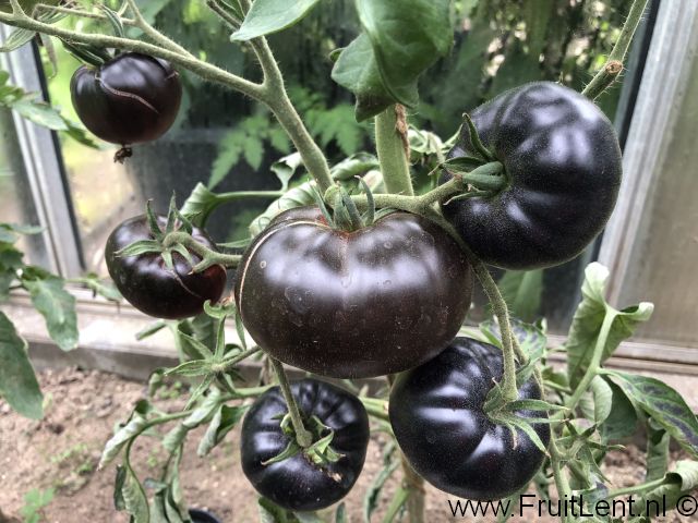 ‘Black Beauty’ is één van de nieuwigheden, waarmee wordt getracht het assortiment met blauwe tomatenrassen verder uit te breiden. In dit geval gaat het om een vleestomaat met een rode basiskleur, waarbij de schil van de vruchten is voorzien van een extreem sterke paarse verkleuring.