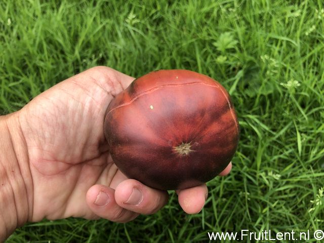 De vruchten zijn platrond, waarbij de meeste vruchten zich qua vruchtgewicht bevinden tussen 150 en 300 gram (uitschieters tot 450 gram). Het vlezige vruchtvlees is dieprood van kleur, waarbij de smaak voor een blauwe tomaat opvallend goed zou zijn (en daarmee in ieder geval veel beter dan van de eerste blauwe tomatenrassen die op de markt verschenen). De eerste vruchten rijpen vrij laat. De vruchten kunnen in rijpe toestand best even aan de plant blijven hangen, of worden bewaard bij kamertemperatuur.
