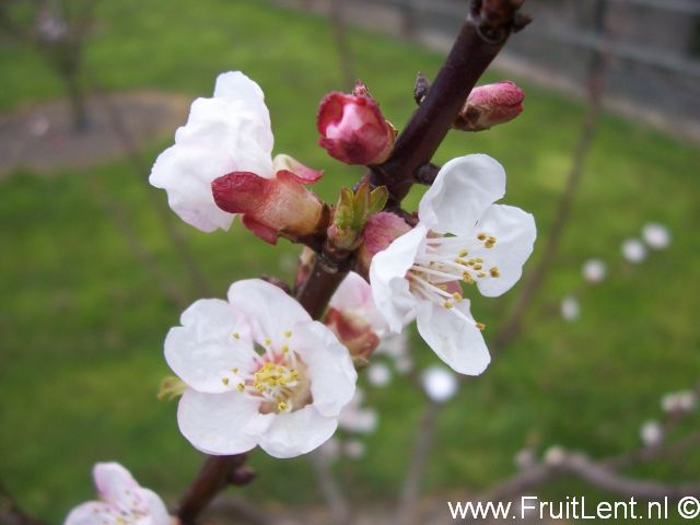 In het voorjaar van 2010 is in FruitLent een laagstamboom van ‘Pinkcot’ ® geplant die was geënt op onderstam ‘St. Julien A‘ (ter vervanging van één van de overleden ‘Hargrand’ bomen). Als gevolg van wintervorstschade, die de boom al had opgelopen tijdens de strenge winter van 2012, is de boom in het voorjaar van 2013 gerooid. Er stond echter al een vervangende containerboom van ‘Pinkcot’ ® gereed, welke op 15 juni 2013 op dezelfde locatie is geplant. Deze wordt ook als laagstamboom opgekweekt en is geënt op de zwakker groeiende onderstam ‘Wavit‘ ®. In FruitLent zijn de eerste vruchten van ‘Pinkcot’ ® in 2015 geoogst.