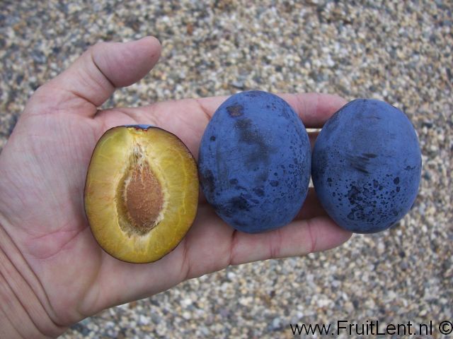 Dit ras geeft zeer grote ovale blauwe vruchten met een diameter van zo’n 45 mm en een vruchtgewicht van 60 tot 95 gram. De vruchten zien er door hun forse grootte, de diepblauwe kleur en de fraaie waslaag zeer aantrekkelijk uit. De vruchten kleuren aan de boom al vroeg blauw, maar zijn dan nog niet rijp. Hierdoor bestaat de kans op te vroeg oogsten, hetgeen de kwaliteit negatief beïnvloedt.