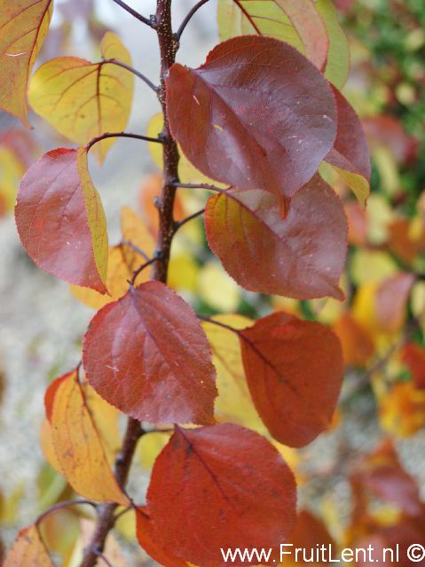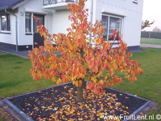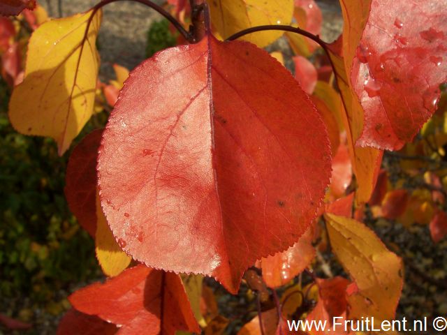 In FruitLent blijkt de boom van ‘Hargrand’ elk jaar zeer fraaie herfstkleuren te vertonen en blijkt deze ook het blad wat vroeger te verliezen dan andere rassen. We weten niet of deze prachtige herfstkleuren een raseigenschap is, of dat dit komt door de specifieke standplaats (de boom staat namelijk op een plek in de siertuin, waar de ondergrond plaatselijk wat zandiger en armer is), of dat dit misschien komt door de combinatie met de ‘Pumiselect‘ ® onderstam.