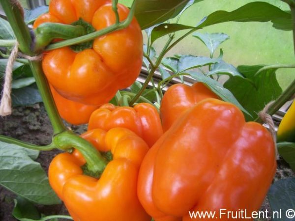De bovenstaande en onderstaande foto’s zijn gemaakt in onze hobbykas. In de buitenteelt duurt het uiteraard langer voordat de vruchten het oranje stadium bereiken en kunnen ze ook als groene paprika worden geoogst.
