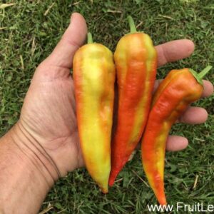 De vrij kleine puntvormige snackpaprika’s van ‘Lunchbox Orange’ kleuren van groen naar helderoranje en hebben in het oranje stadium een zoete smaak.