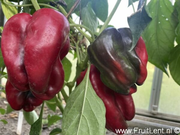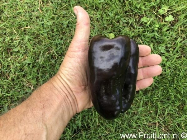 Dit ras geeft dunwandige middelgrote langwerpig geblokte vruchten (140-160 gram) die in het onrijpe stadium paars (violet) van kleur zijn. In het rijpe stadium kleuren de vruchten rood.