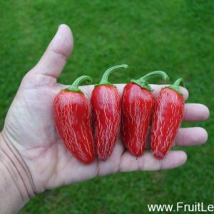 De vrij compacte vertakte planten groeien rechtop, met de pepers met de punt naar boven gericht. De conische pepers zijn 5 à 7 cm lang en verkleuren van groen naar rood. Tijdens de rijping worden de pepers zwaarder, waarbij de punt zich soms naar beneden kan keren. De meeste vruchten blijven echter met de punt naar boven gekeerd (zie bijgevoegde foto’s).