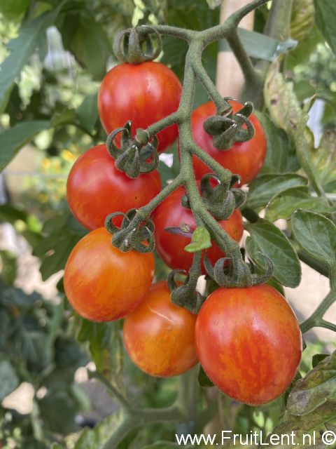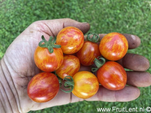 Het gaat om een ronde tot eivormige cherry- tot cocktailtomaat, geel gevlamd op een rode achtergrond. De vruchtjes hebben een vruchtgewicht van zo’n 15 tot 30 gram. Het vruchtvlees is goudkleurig en heeft een zoete smaak. Het vruchtvlees is echter wat melig en mist een lekker zuurtje. Daarom is dir ras wat ons betreft met name een toevoeging aan het aardappelziekte assortiment vanwege de spectaculaire kleurcombinatie. Voor de smaak zijn er betere te vinden. De eerste vruchtjes rijpen middelvroeg. Gerijpte vruchtjes zijn weinig gevoelig voor scheuren.