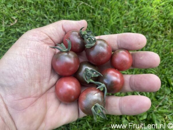 In het geval van ‘Rosella’ gaat het om een cherrytomaat in de ongebruikelijke donkerpaars-rode kleur. In het onrijpe stadium hebben de vruchtjes donkergroene schouders. De vruchtkleur is dezelfde als van de inmiddels bekende ‘Black Cherry’ en ‘Black Opal’ (deze laatste komt ook van Gourmet Genetics). De vruchtjes van ‘Rosella’ hebben het normale formaat van een cherrytomaat met een wat complexere zeer goede smaak: vrij zoet met een tikkeltje zuur. De eerste vruchtjes rijpen tamelijk vroeg.