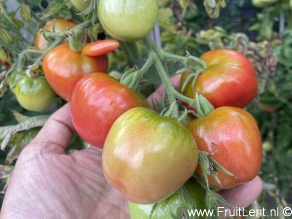 De planten zouden mogelijk resistentie kunnen hebben tegen de aardappelziekte (Phytophthora infestans), waardoor dit ras extra geschikt zou kunnen zijn voor buitenteelt in Nederland. Omdat we dit nog niet zeker weten en de resistentie nog niet onder locale omstandigheden is getest, bieden we dit ras vooralsnog aan onder de “normale” tomaten.