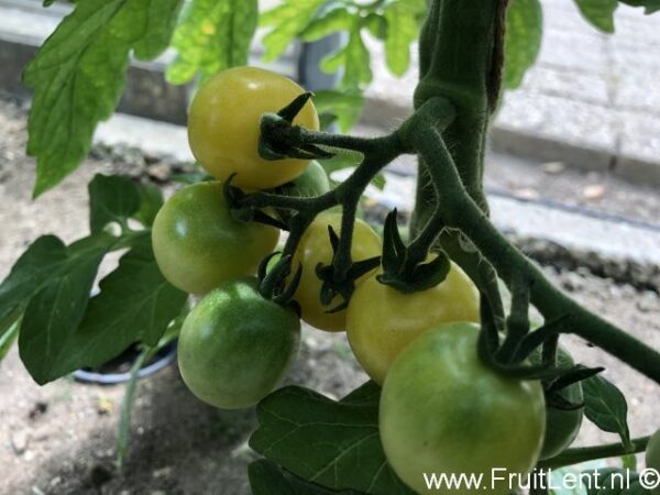 Het ras geeft cremewit gekleurde vrij grove ronde cherrytomaten met een diameter van 2½ cm met een milde fruitige smaak. De vruchten hangen in niet al te grote trossen (10-20 stuks) aan de plant. De eerste vruchtjes rijpen middentijds.