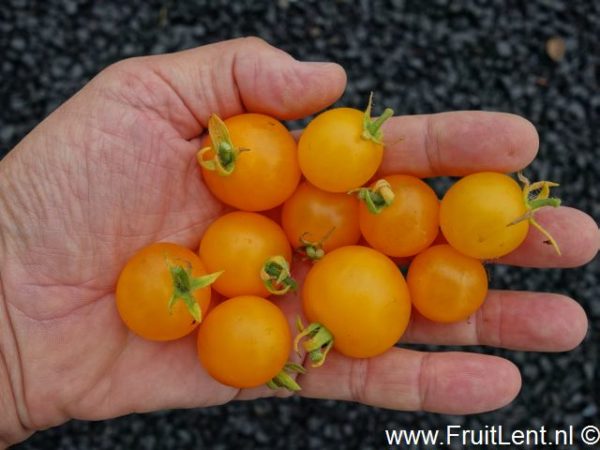 De gele tomaatjes hebben de grootte van een cherrytomaat; ze variëren enigszins in grootte, doch het gemiddeld vruchtgewicht bedraagt 10 à 11 gram. Goede smaak.