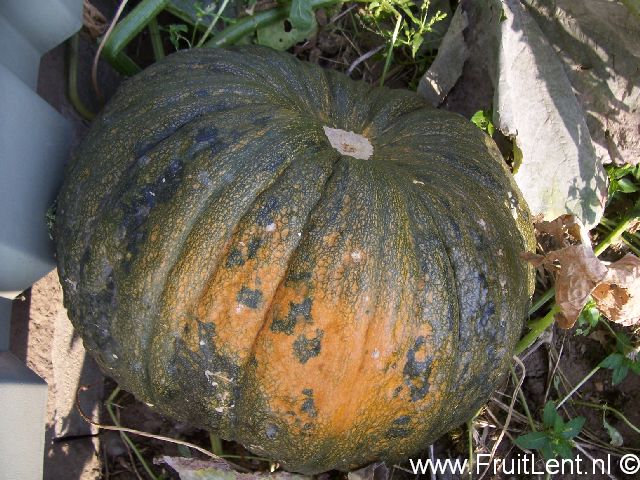 De vruchten zelf zouden eventueel zeer jong kunnen worden gegeten als courgettes. Rijp zijn de vruchten 2 tot 7 kg zwaar, bol- tot eirond, geel van kleur met groene vlekken en strepen. Indien de vruchten nog langer blijven liggen, vervagen de groene vlekken en strepen. In het rijpe stadium is het gele vruchtvlees licht draderig en niet echt lekker. De planten groeien licht rankend met ranken van enkele meters lang.