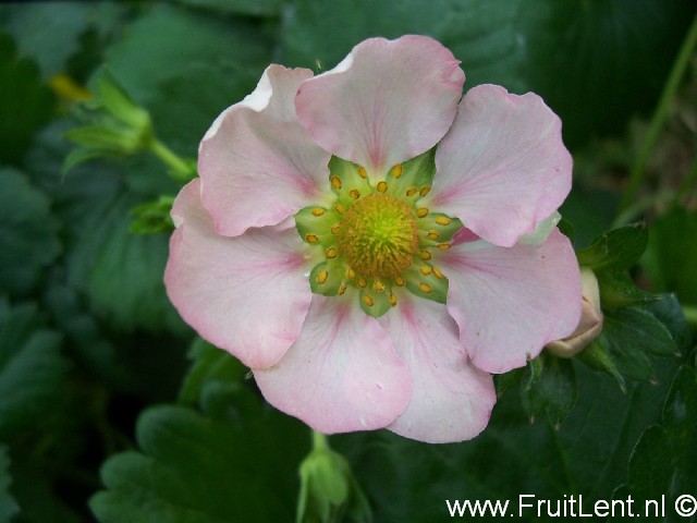 De planten hebben een middelmatige tot tamelijk sterke groeikracht met middelgroene tot donkergroene bladeren met half-opgerichte groeiwijze en tamelijk veel uitlopers. Tamelijk gevoelig voor meeldauw. Jonge planten beginnen al tamelijk vroeg te bloeien met fraaie grote lichtroze bloemen (appelbloesemkleur). De bloemen staan op lange opgerichte bloemtrossen die ver boven het blad uit steken. Latere bloemen worden gewoonlijk wat lichter van kleur.