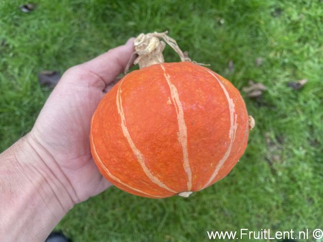 Dit ras betreft een mini Kabocha met een oranje kleur, decoratief, maar door zijn beperkte vruchtgewicht van circa 500-800 gram ook zeer geschikt voor kleine huishoudens.