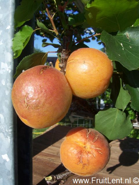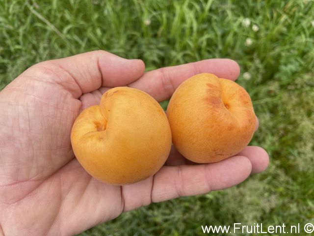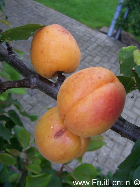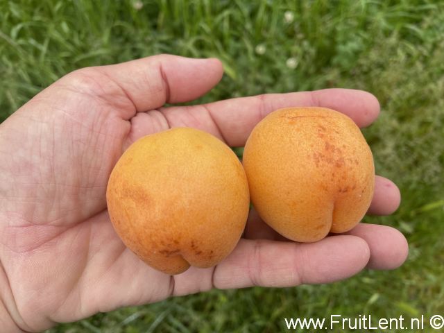 De vruchten lijken het meest op abrikozen, doch zijn iets meer rond van vorm dan standaard-abrikozen en de schil en het vruchtvlees zijn iets lichter geeloranje gekleurd. De schil is bijna glad. Het vruchtvlees is vrij sappig, steviger en vleziger dan van standaard-abrikozen en heeft een zeer goede smaak. De smaak doet voornamelijk denken aan abrikozen, echter met een lichte bijsmaak van Japanse pruim. De steen ligt los in het vruchtvlees. De vruchten zijn goed bewaarbaar en goed transporteerbaar.