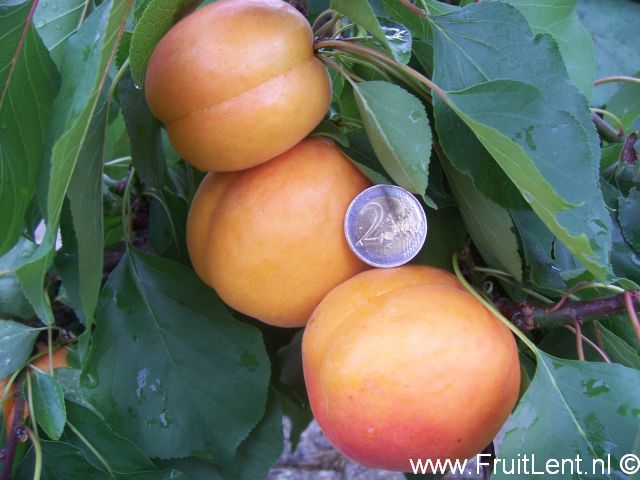 De vruchten hebben een zeer fraai uiterlijk: een weinig behaarde schil, dof geel-oranje van kleur met een bescheiden rode blos. Het zeer stevige lichtoranje gekleurde vruchtvlees heeft een tamelijk goede harmonieuze smaak en een los liggende steen. De vruchten hebben goede bewaar- en transporteigenschappen. Geschikt voor verse consumptie en voor verwerking.